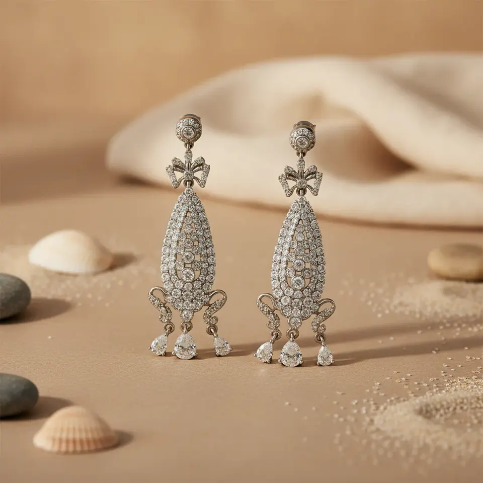 ต่างหูห่วงเงินสำหรับผู้หญิง ประดับเพชรซิคอนสีขาว มุก และชุบทอง เหมาะสำหรับงานแต่งงานและงานปาร์ตี้