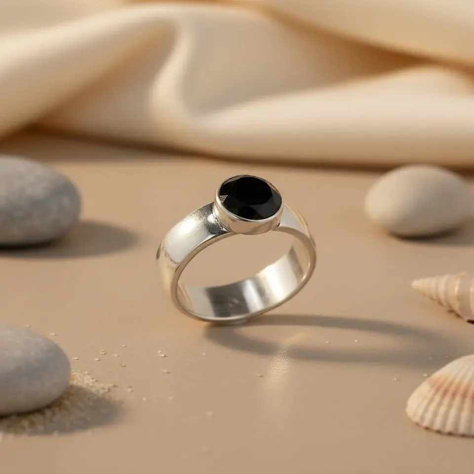 แหวนเงินประดับพลอยออนิกซ์สีดำสำหรับผู้หญิง ดีไซน์ทันสมัย