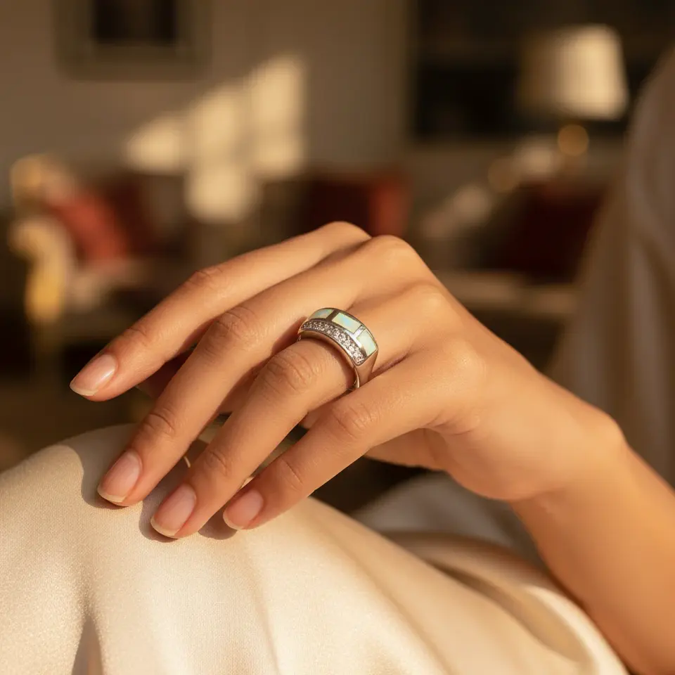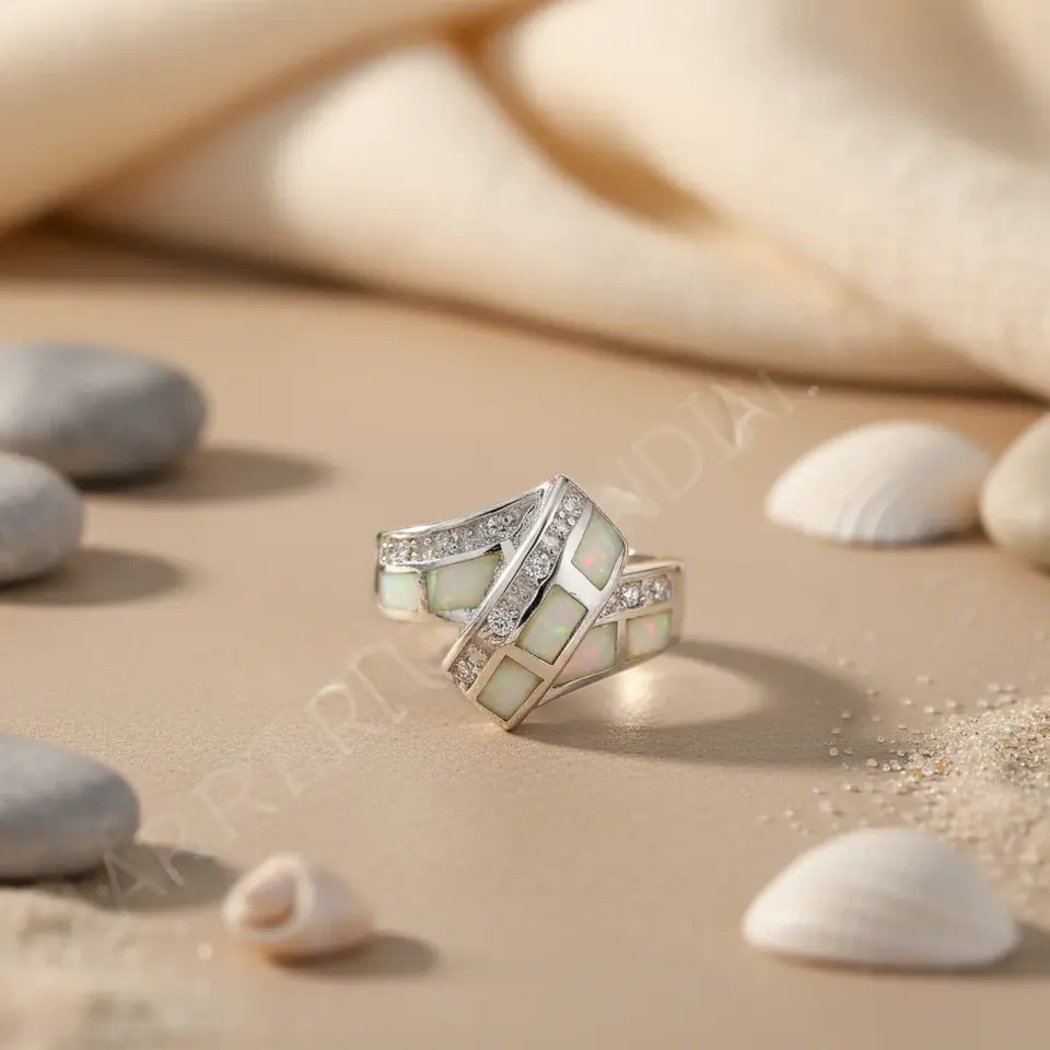 แหวนโอปอลเงินสำหรับผู้หญิง ดีไซน์เรขาคณิต งานศิลปะ แฟชั่น ประดับเรซิ่น ชุบทอง พร้อมใบรับรอง IGI สำหรับอัญมณีธรรมชาติ