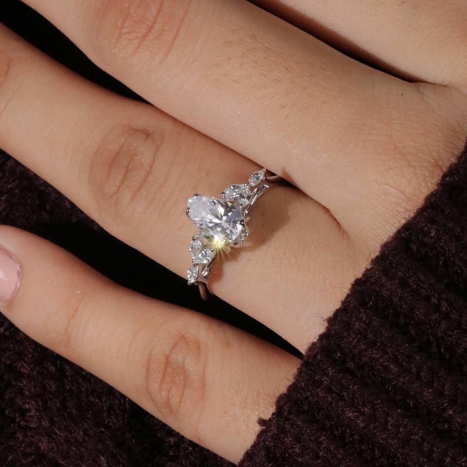 แหวนเพชรทรงลูกแพร์ชุบทอง 14K ประดับเพชรซินเธติกสีเงินสำหรับผู้หญิง ได้รับการรับรองจาก IGI เหมาะสำหรับงานหมั้นและงานแต่งงาน