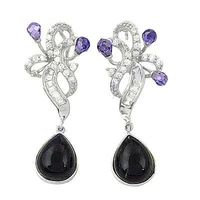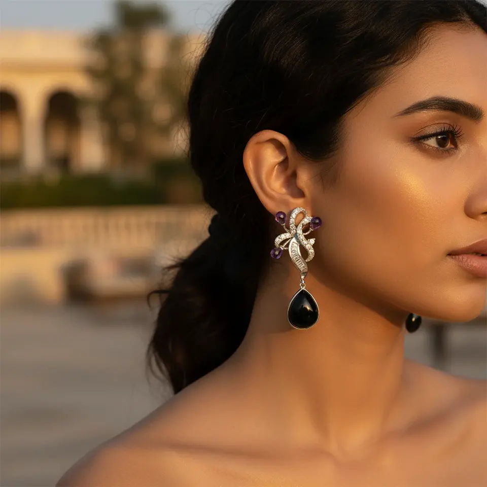 ต่างหูหยดน้ำทรงหยดน้ำสีเงินสำหรับผู้หญิง เครื่องประดับอัญมณีแฟชั่น