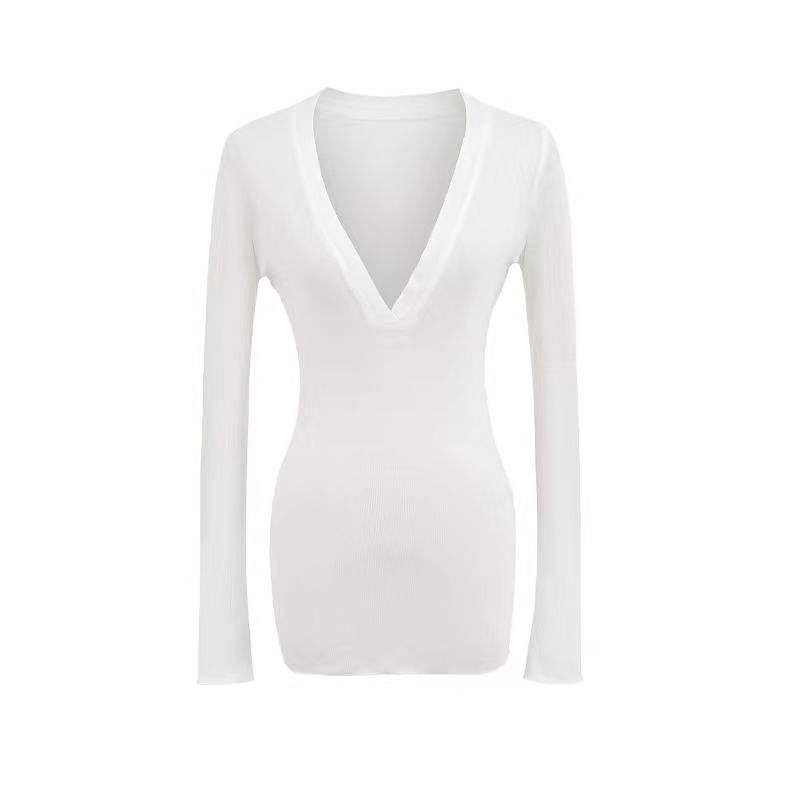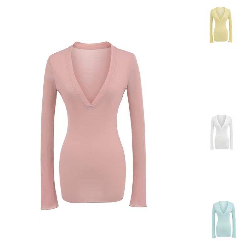 เสื้อคอวีลึกแขนยาวของผู้หญิงเสื้อโพลีเอสเตอร์100% นิ่มไม่ยับง่าย