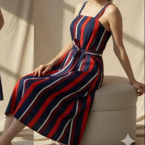 เดรสสายเดี่ยวทรงเอไลน์สำหรับผู้หญิง ดีไซน์เรียบง่ายทันสมัย ผ้าโพลีเอสเตอร์ 100% ระบายอากาศได้ดี แต่งกระดุม ความยาวปานกลาง สวมใส่สบาย