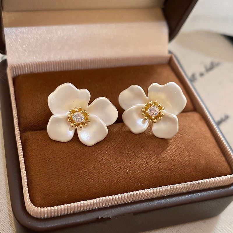 ต่างหูแบบติดหูทรงดอกไม้สีขาวเรียบหรู สไตล์วินเทจ ดีไซน์ทันสมัย ทำจากโลหะผสม เหมาะสำหรับผู้หญิง