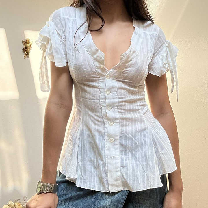 เสื้อเบลาส์ลำลองผ้าโปร่งสำหรับผู้หญิงผ้าคอตตอนเนื้อเรียบระบายอากาศน้ำหนักเบาเรียบง่ายฤดูร้อน
