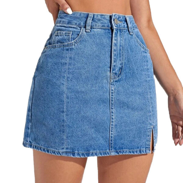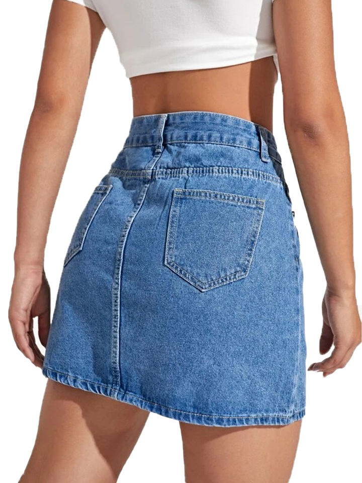กระโปรงผ้ายีนส์เอวสูงทรงเอไลน์สำหรับผู้หญิงกระโปรงผ้าคอตตอนผ้าซักเบาแบบลำลอง