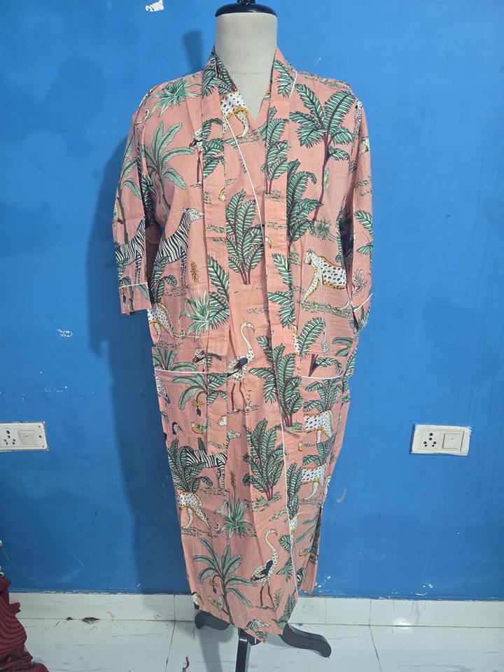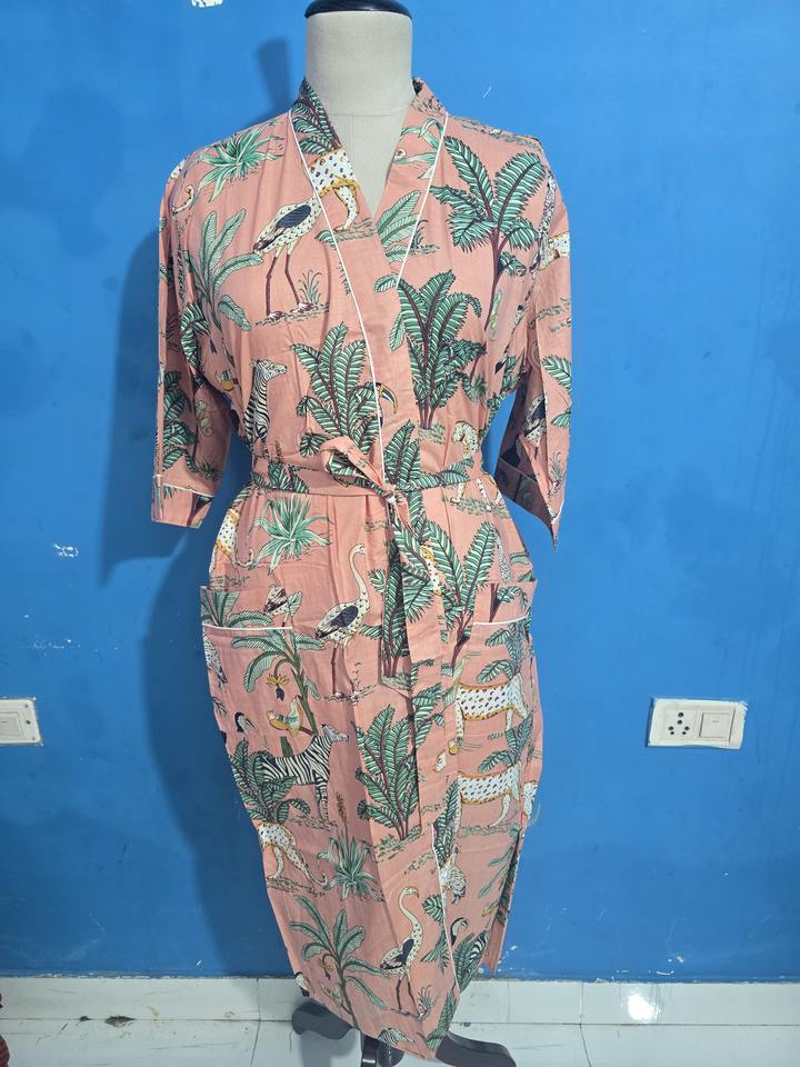 ชุดนอนผู้หญิง ชุดคลุมชายหาด และชุดลำลอง ทำมือ ผ้าฝ้ายฤดูร้อน คิโมโนผ้าฝ้ายอินเดีย เสื้อคลุมคิโมโน ชุดเดรส ชุดคลุมอาบน้ำน้ำหนักเบา