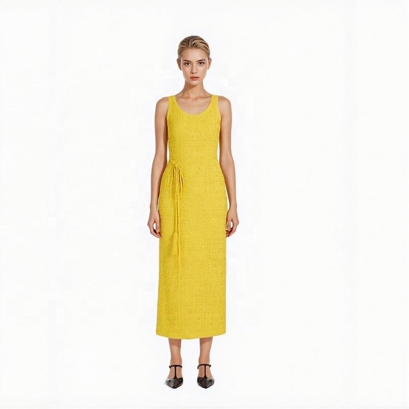 เดรสไหมพรมถักโครเชต์ทรงเอ แขนกุด โชว์ช่วงเอว ระบายอากาศ ใส่สบาย สำหรับผู้หญิง สไตล์ลำลอง แฟชั่นชายหาด