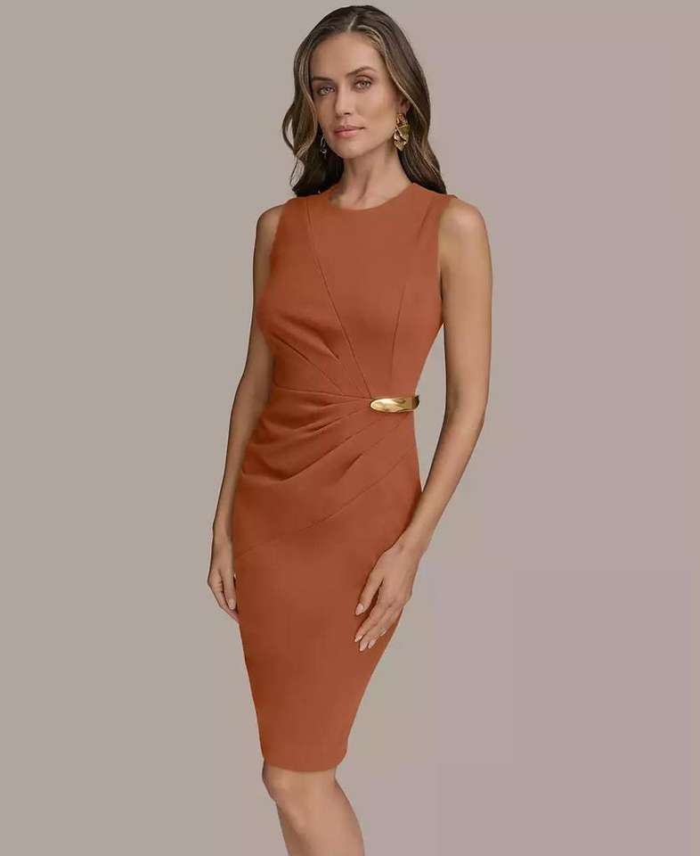เดรสปลอกแขนกุดประดับอัญมณีสำหรับผู้หญิงพร้อมรายละเอียดฮาร์ดแวร์ | Donna Karan นครนิวยอร์ก