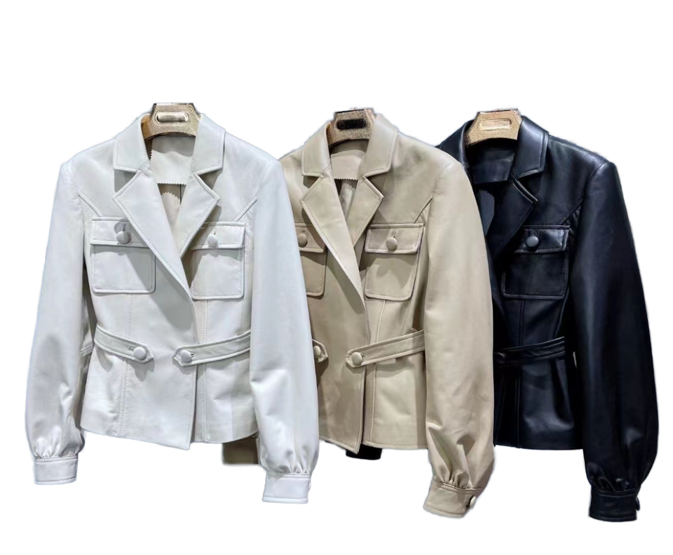 เสื้อแจ็คเก็ตหนังแกะทรงครอปเข้ารูปสำหรับผู้หญิง ปิดกระดุมเม็ดเดียว หนังแท้ กันลม เป็นมิตรกับสิ่งแวดล้อม แห้งเร็ว