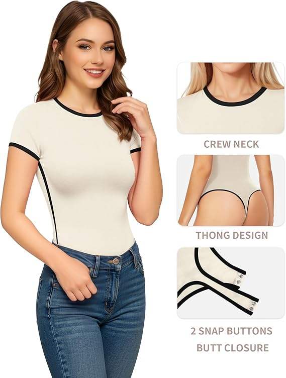 บอดี้สูทเข้ารูปของผู้หญิงเสื้อยืดผ้าฝ้ายยืดแบบชิ้นเดียวสำหรับใส่สบายใส่ได้ทุกวัน
