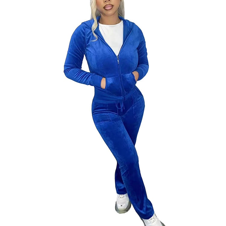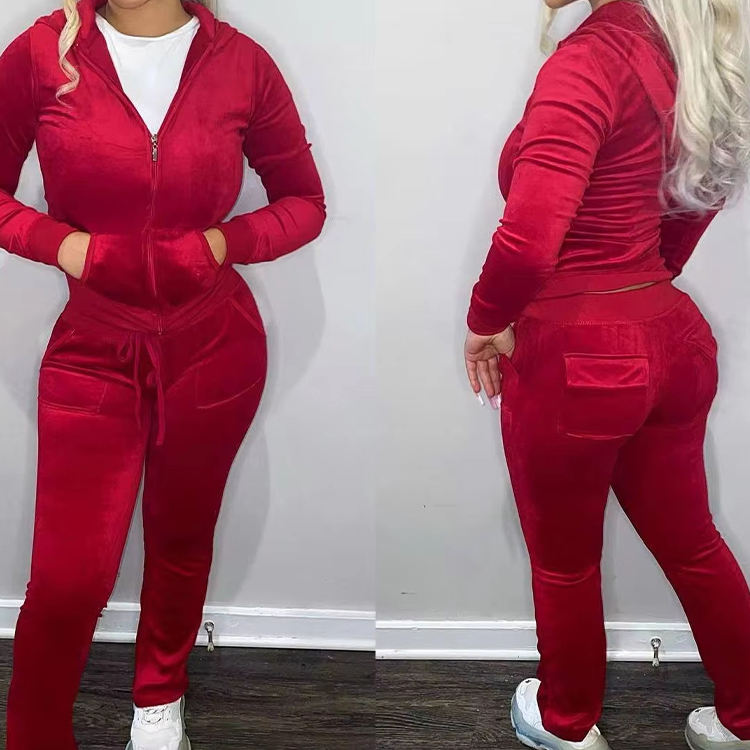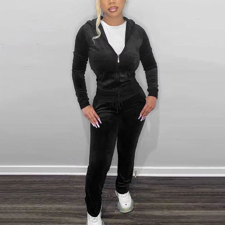 ชุดวอร์มผ้ากำมะหยี่2ชิ้นสไตล์สตรีททรงสลิมฟิตชุดวอร์มผ้ากำมะหยี่ปักลาย2ชิ้นชุดออกกำลังกายแบบลำลองชุดใส่อยู่บ้านชุดวอร์มสีพื้น