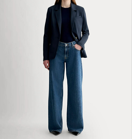 เสื้อเบลเซอร์ลำลองทรงเข้ารูปสีน้ำเงินกรมท่าสำหรับผู้หญิง กระดุมแถวเดียว มีกระเป๋าใช้งานได้จริง