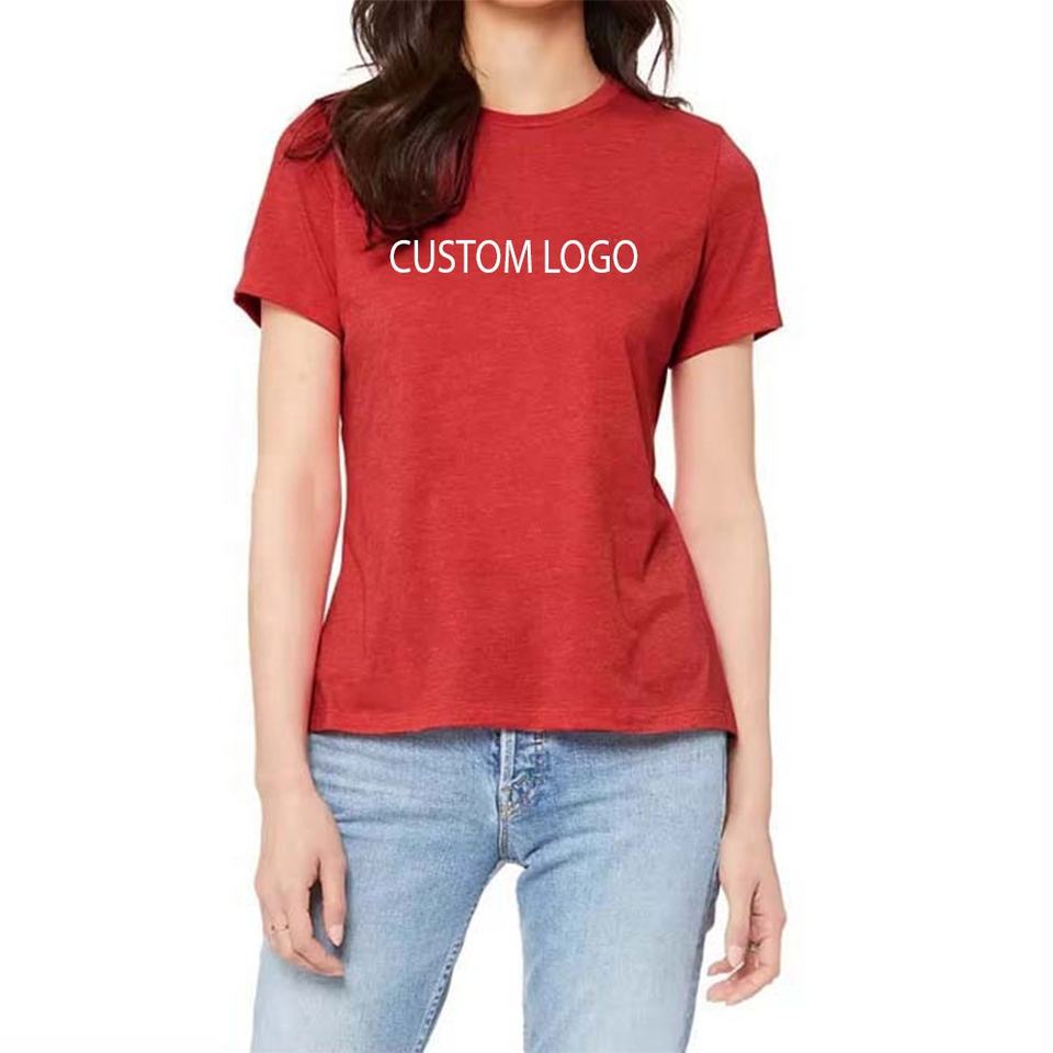 เสื้อยืดผู้หญิงทรงเข้ารูป ผลิตจากผ้าโพลีเอสเตอร์/คอตตอนผสม เป็นมิตรต่อสิ่งแวดล้อม แห้งเร็ว ระบายอากาศดี แขนสั้น คอวี รับสกรีนโลโก้