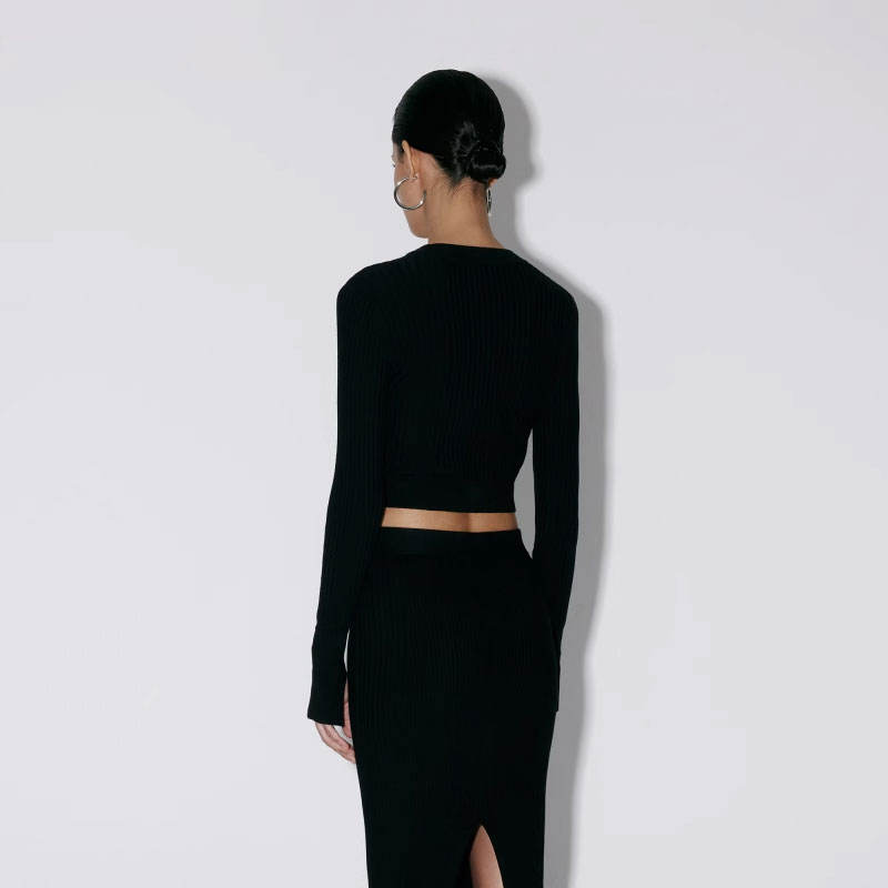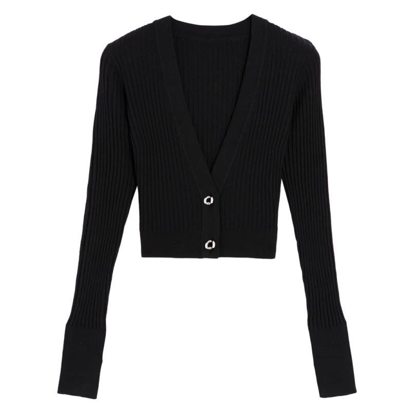 เสื้อถักแขนยาวคอวีทรงเข้ารูปสำหรับผู้หญิงเสื้อสเวตเตอร์ถักลายทางมีรอยหลุมตามสั่งโลโก้ OEM ODM