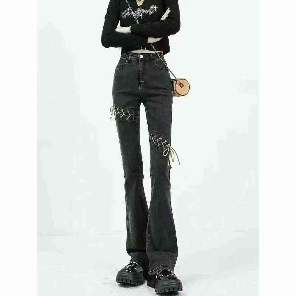 กางเกงยีนส์สีน้ำเงินเอวสูงทรงสกินนี่เข้ารูปสำหรับผู้หญิง พร้อมเอวยืดหยุ่นใส่สบายทรงดินสอ