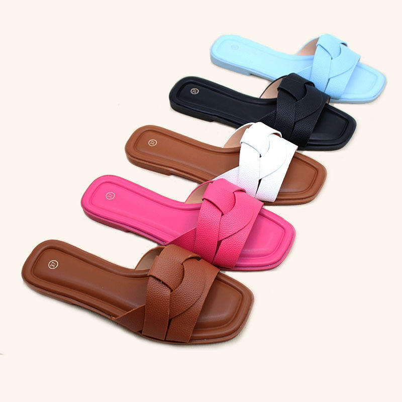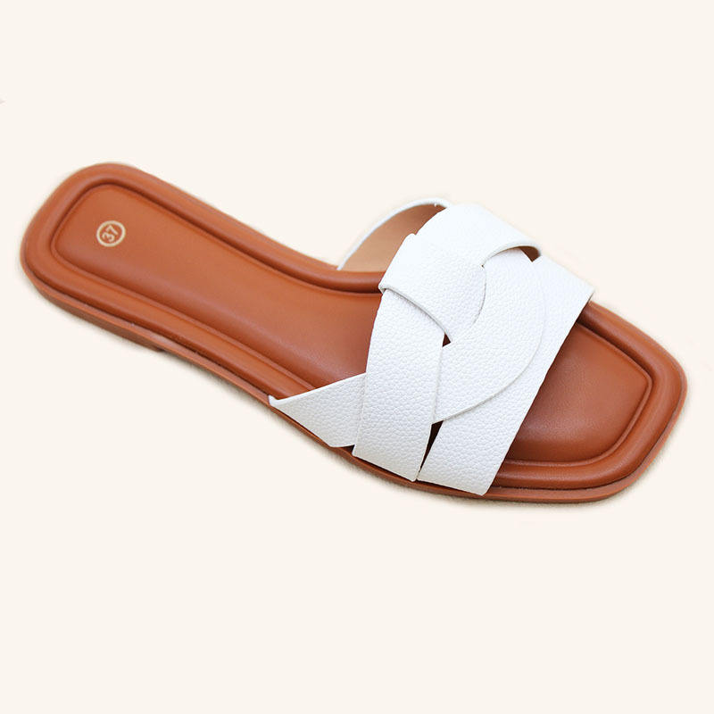 รองเท้าแตะผู้หญิงสีทึบดีไซน์กลวงพื้นเรียบสวมใส่สบายในฤดูร้อนขนาด 35-40