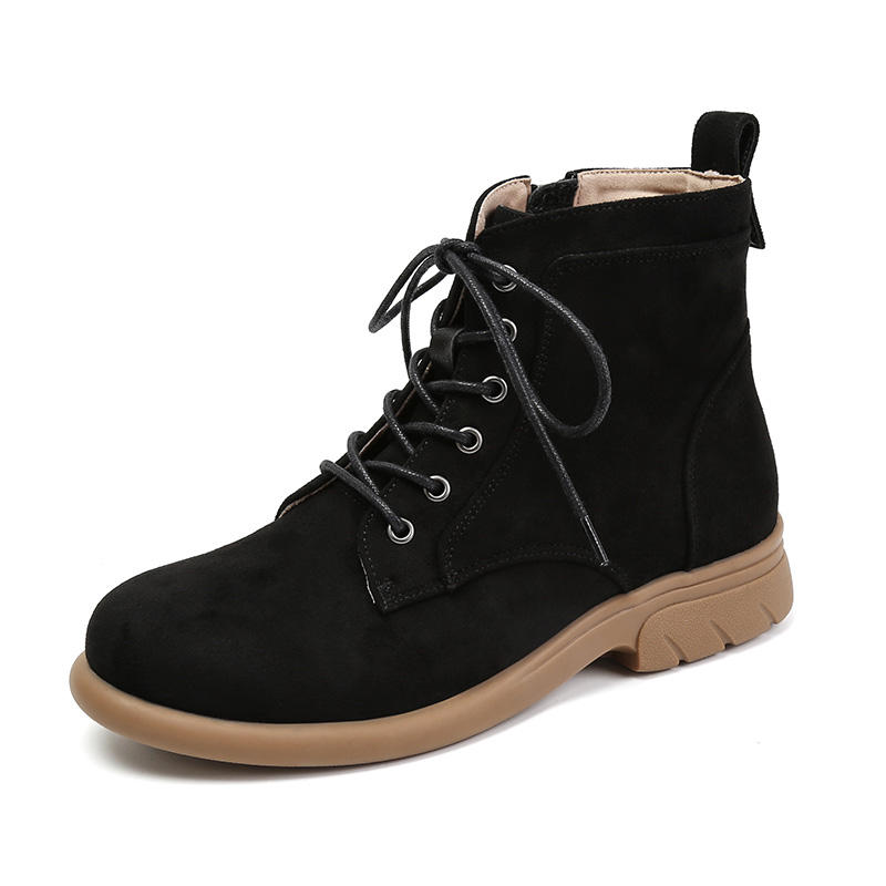 รองเท้าบูทหนังกลับนุ่มสำหรับผู้หญิงสีดำสไตล์เรโทรแบบมีซิปข้อเท้าส้นหนาใส่สบายระบายอากาศได้ดีสำหรับฤดูใบไม้ผลิ ฤดูใบไม้ร่วง ฤดูหนาว รองเท้าลำลองไซส์ใหญ่ 41 42