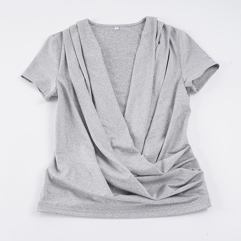 เสื้อผู้หญิงคอวีลึกแบบจับจีบ แขนสั้นทรงเข้ารูป สไตล์ลำลองสำหรับฤดูร้อน แฟชั่น Y2K สตรีทแวร์