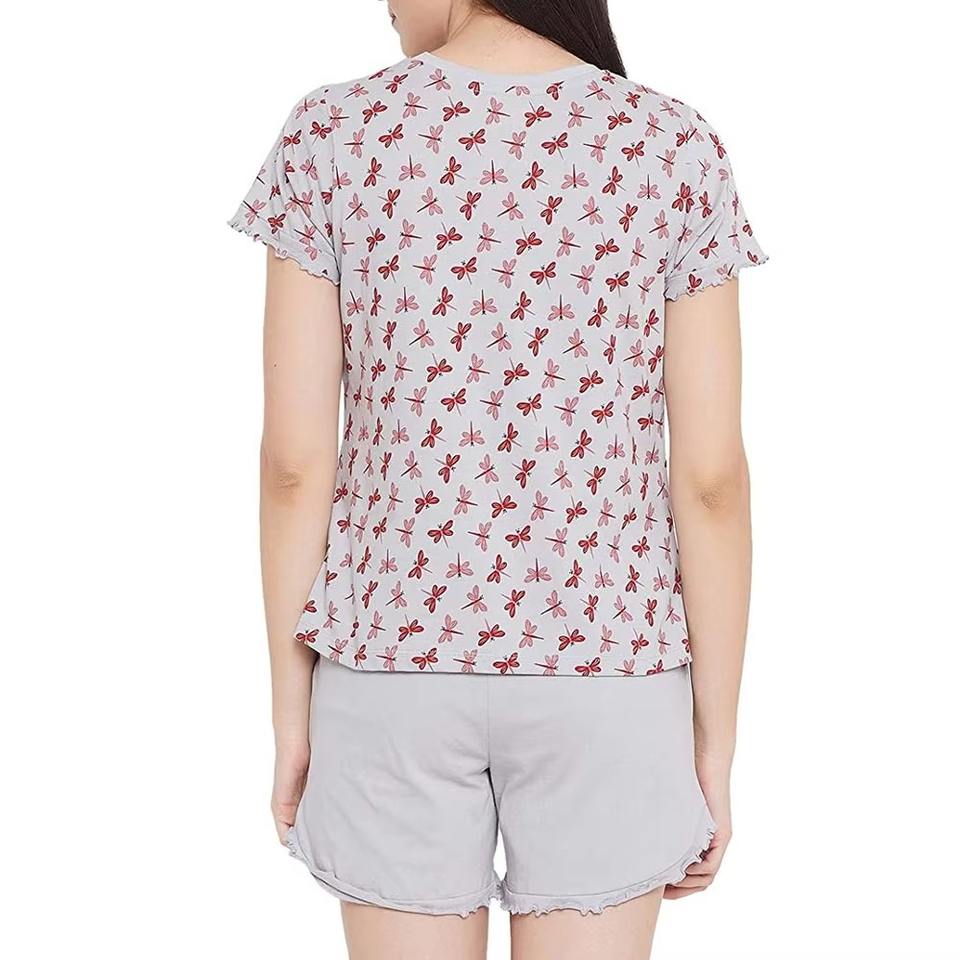 ชุดนอนผู้หญิงผ้าระบายอากาศดี เสื้อยืดแขนสั้น กางเกงขาสั้น ชุดนอน 2 ชิ้น สำหรับผู้หญิง ใส่สบายๆ อยู่บ้าน คอกลม