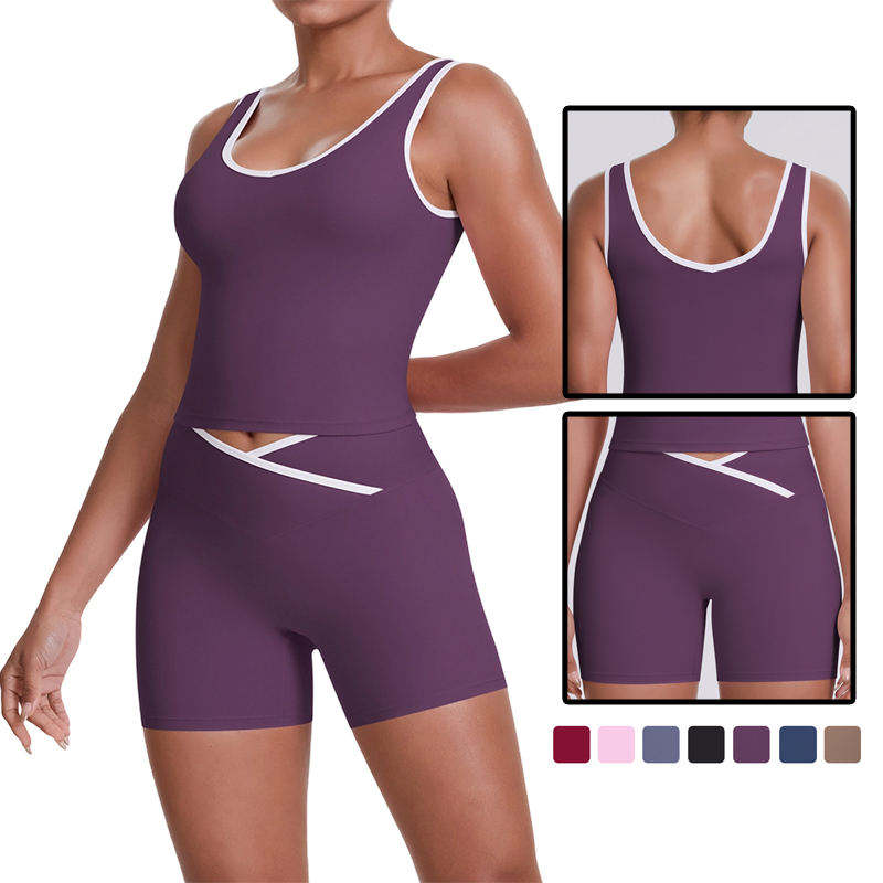 ชุดเซ็ต 5 ชิ้น กางเกงขาสั้นโยคะเอวสูง ระบายอากาศได้ดี สำหรับผู้หญิงไซส์ใหญ่ ชุดออกกำลังกาย กระชับสะโพก