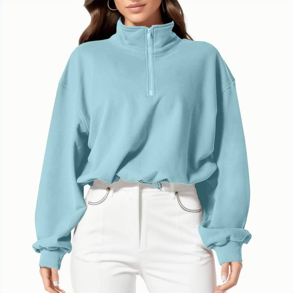 เสื้อสเวตเตอร์มีฮู้ดสำหรับผู้หญิงเสื้อออกกำลังกายมีซิปครึ่งแขนเสื้อมีฮู้ดเสื้อออกกำลังกายสไตล์ฮาราจูกุ