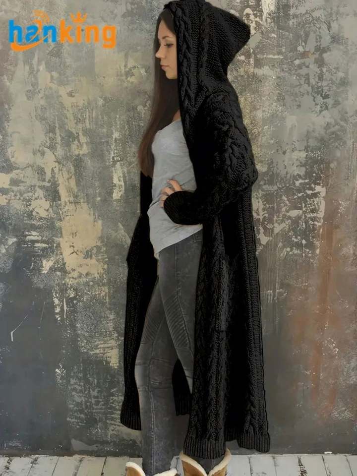 เสื้อคลุมคาร์ดิแกนผู้หญิง แขนยาว มีฮู้ด สีพื้น ผ้าถัก สไตล์ลำลอง ทรงหลวม โอเวอร์ไซส์ รุ่น J0041