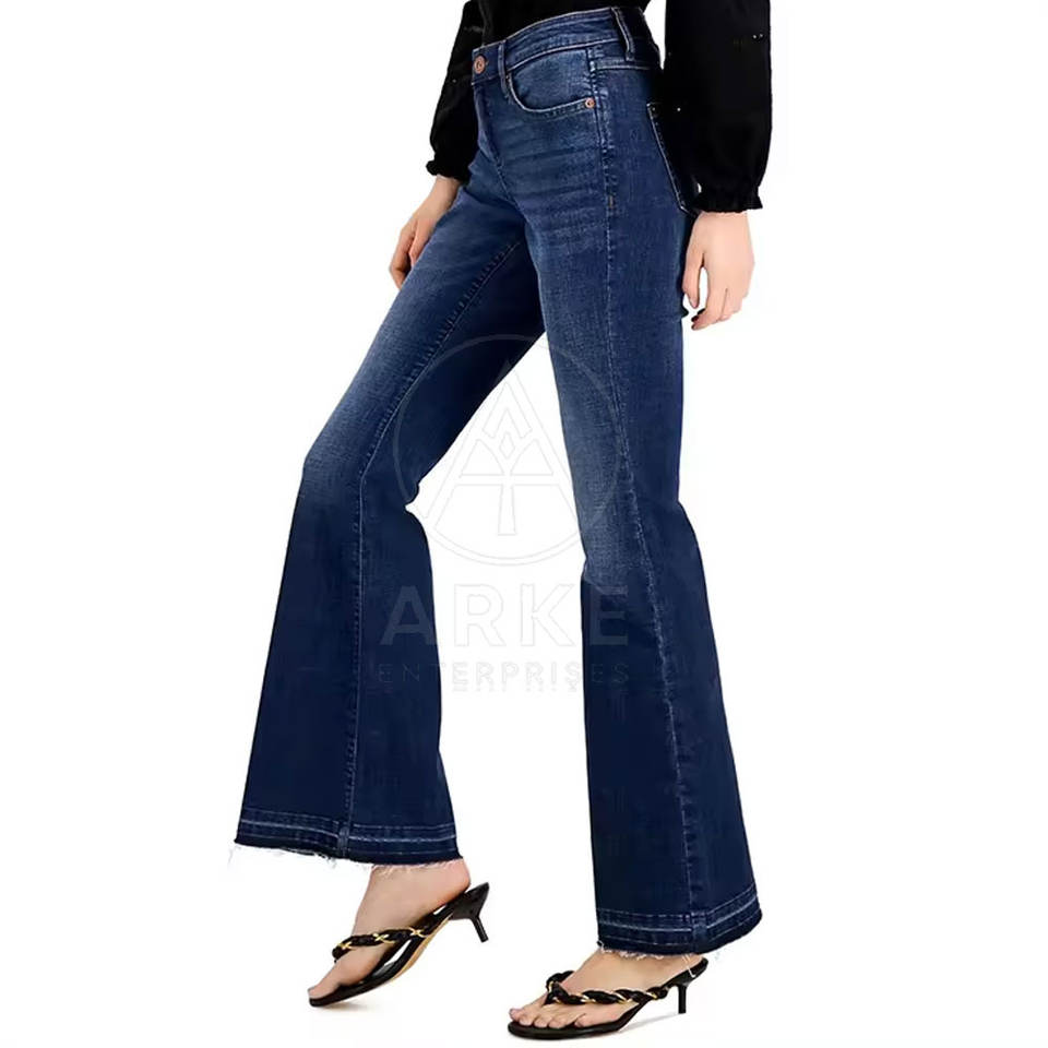 กางเกงยีนส์ผู้หญิงสีพื้นเอวกลางผ้าฝ้าย 100% ทรงขาตรงหลายกระเป๋า ราคาสมเหตุสมผล เหมาะสำหรับใส่ในฤดูหนาว
