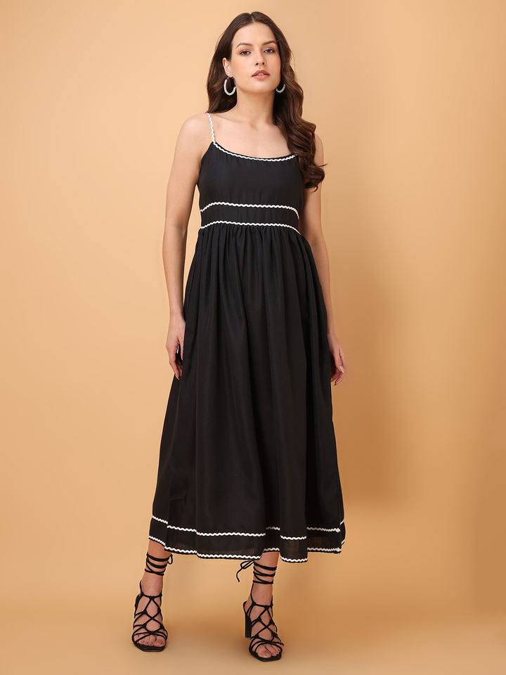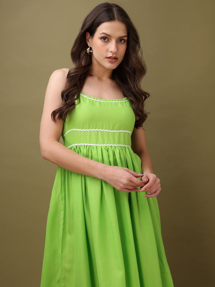 เดรสแม็กซี่คอกลมแขนกุดทรงเข้ารูปสีพื้นและบานสำหรับผู้หญิง