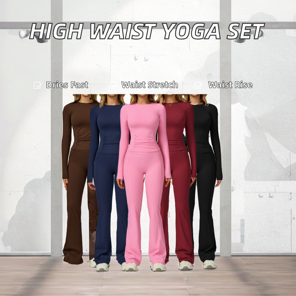 ชุดเซ็ต 2 ชิ้น เสื้อกั๊กและกางเกงโยคะทรงบานเอวสูงผ้าแห้งเร็วระบายอากาศดีสำหรับผู้หญิง ช่วยยกสะโพก กระชับรูปร่าง เหมาะสำหรับออกกำลังกาย