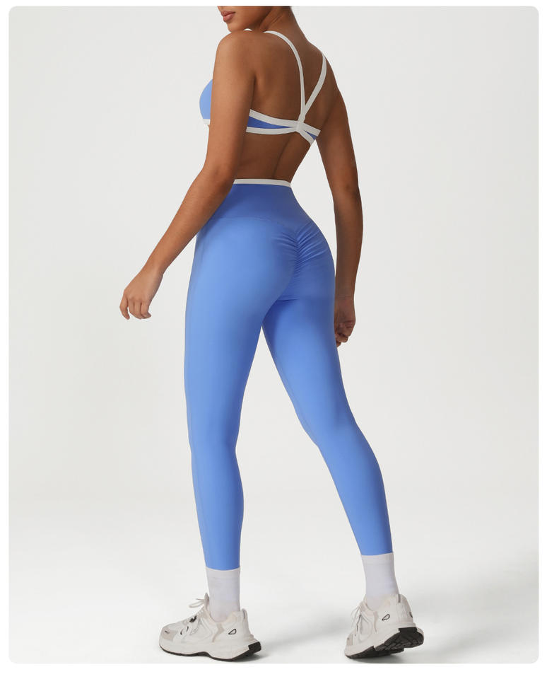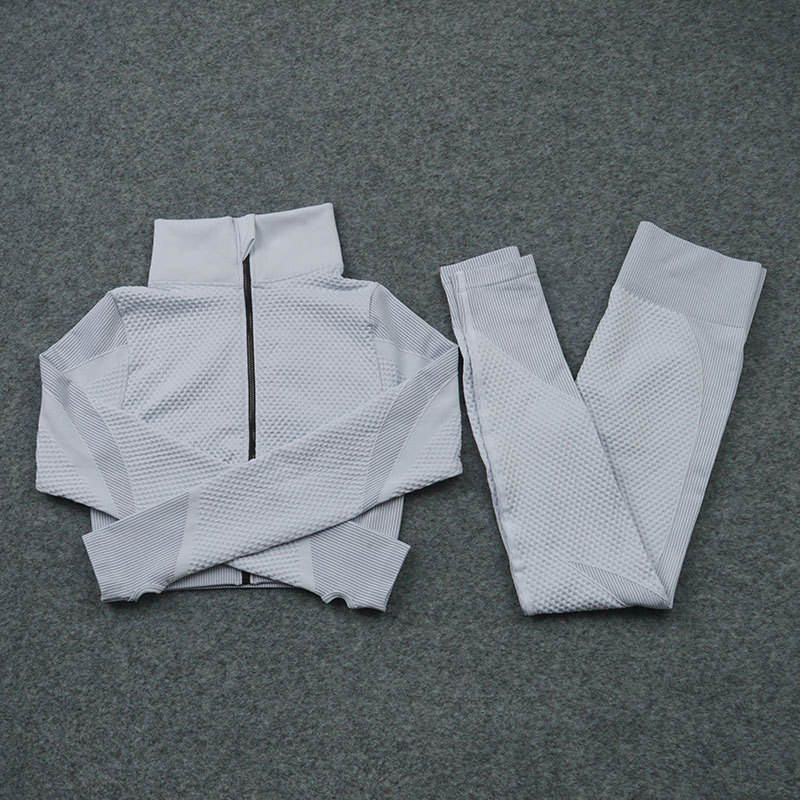 ชุดโยคะผู้หญิงแบบเรียบสีพื้น ระบายอากาศได้ดี ชุดออกกำลังกาย 2 ชิ้น เอวยางยืด สำหรับออกกำลังกายและฟิตเนส