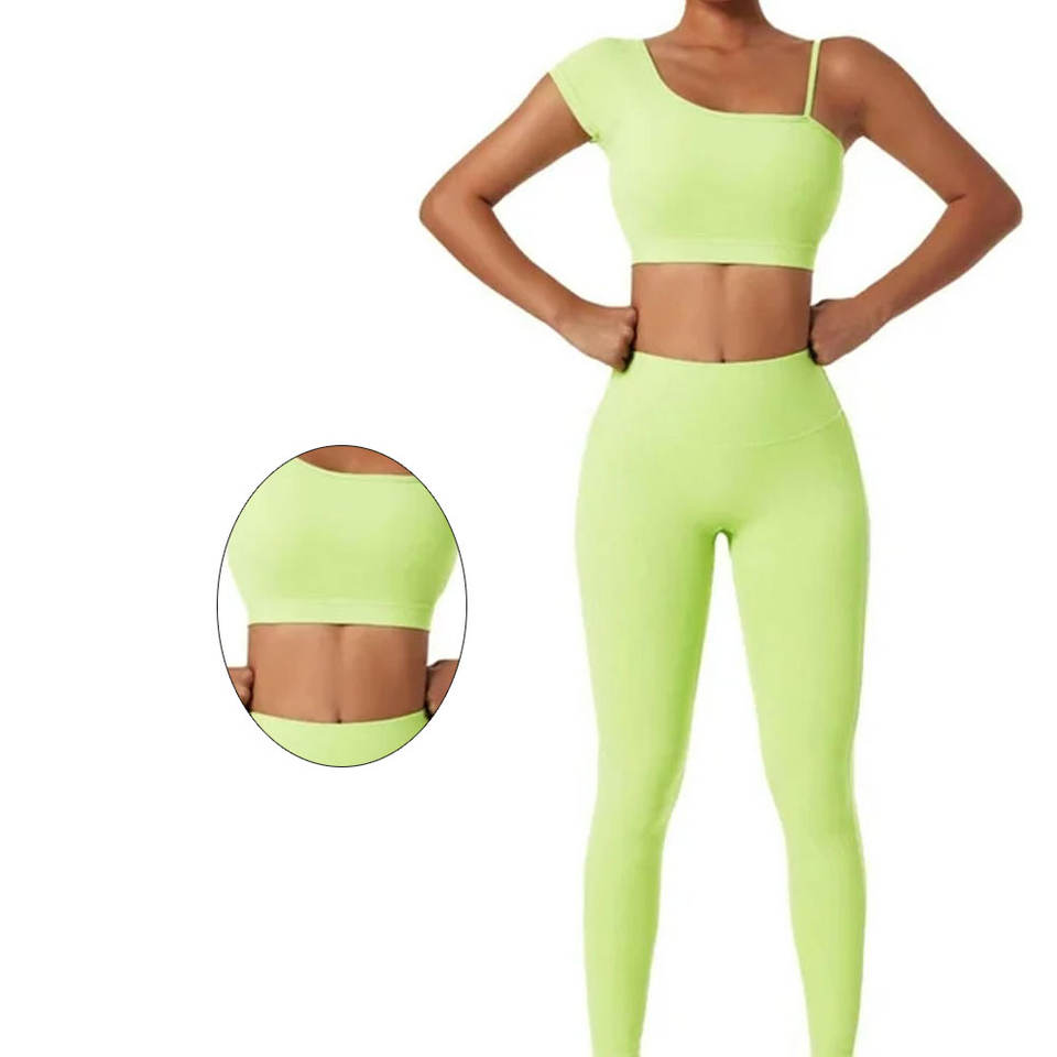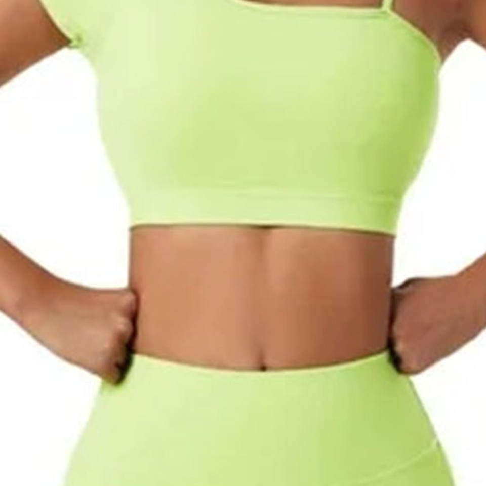 ชุดโยคะสองชิ้นสำหรับผู้หญิงไซส์ใหญ่ ผ้าเนื้อแน่น ความยาวเหนือเข่า พร้อมโลโก้ด้านหน้า ชุดออกกำลังกาย เสื้อชั้นในและกางเกง สำหรับฤดูใบไม้ผลิ/ฤดูร้อน
