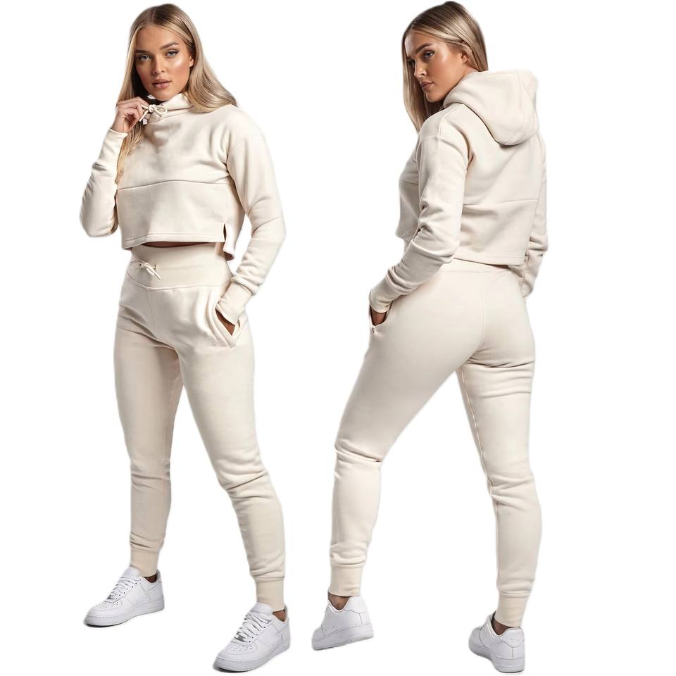 ชุดวอร์มผ้าฟลีซ2ชิ้นสำหรับผู้หญิงชุดวิ่งขนแกะคอตตอนสั้นสีล้วน