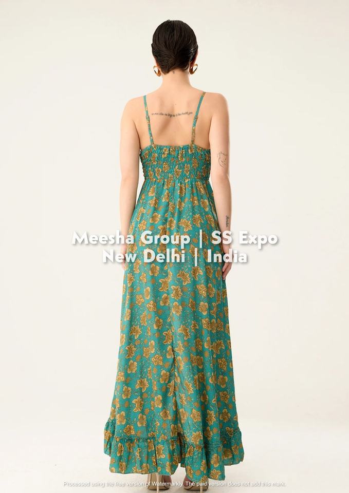 เดรสยาวสายเดี่ยวคอลึกทรงวีสำหรับผู้หญิง ลายดอกไม้ แต่งสม็อคด้านหลัง ผ้าพลิ้วไหว เหมาะสำหรับใส่ไปทะเลในฤดูร้อน มีหลายแบบให้เลือก