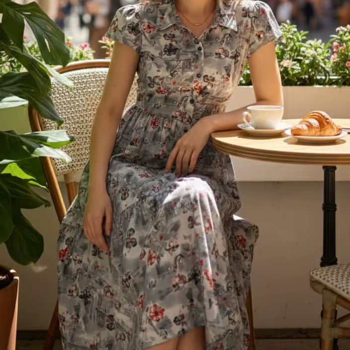 เดรสสายเดี่ยวผู้หญิง ลายอิกกัต ทรงพลิ้ว ยาวคลุมข้อเท้า สีน้ำเงิน สไตล์ลำลอง ติดกระดุม ใส่ได้ทุกวัน ระบายอากาศได้ดี ทรงเอไลน์ ผ้าฝ้าย 100%