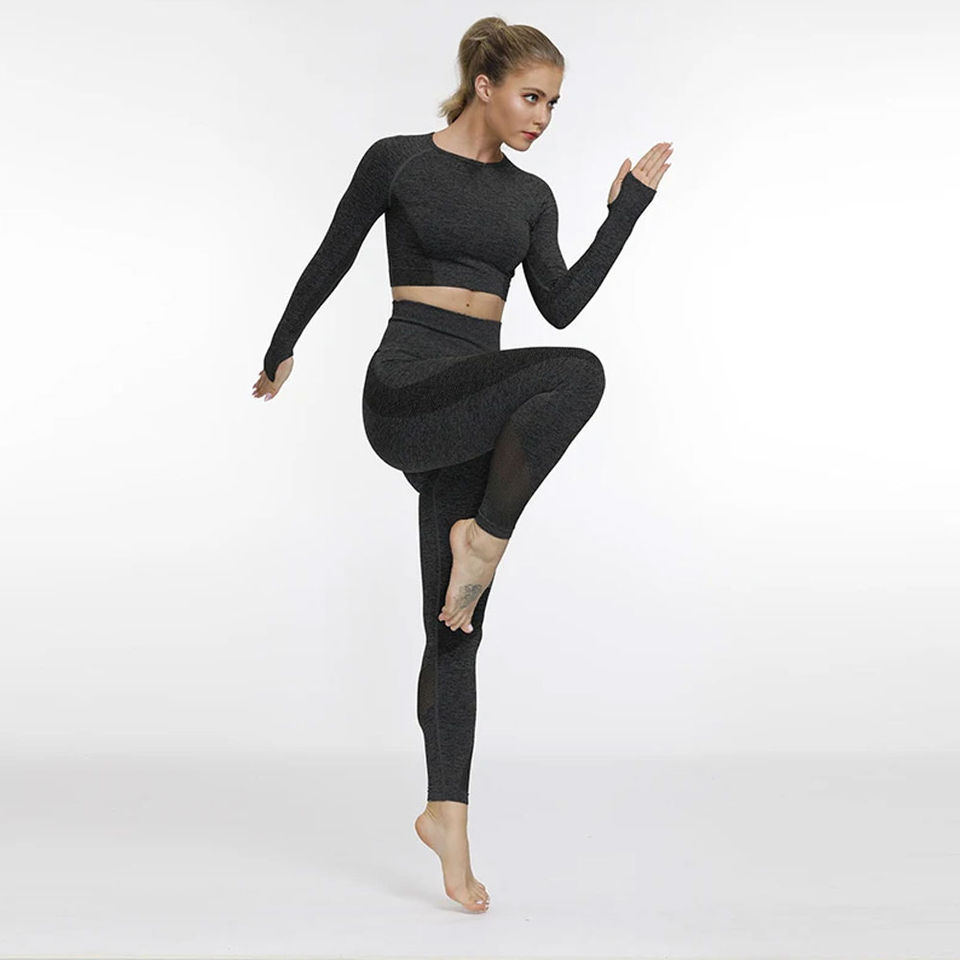 ชุดเซ็ต 2 ชิ้นสำหรับผู้หญิง ผ้าสแปนเด็กซ์/คอตตอน สปอร์ต แบบเต็มตัวและแบบขาสั้น ระบายอากาศ แห้งเร็ว เป็นมิตรกับสิ่งแวดล้อม ดีไซน์เรียบง่าย ทรงเข้ารูป