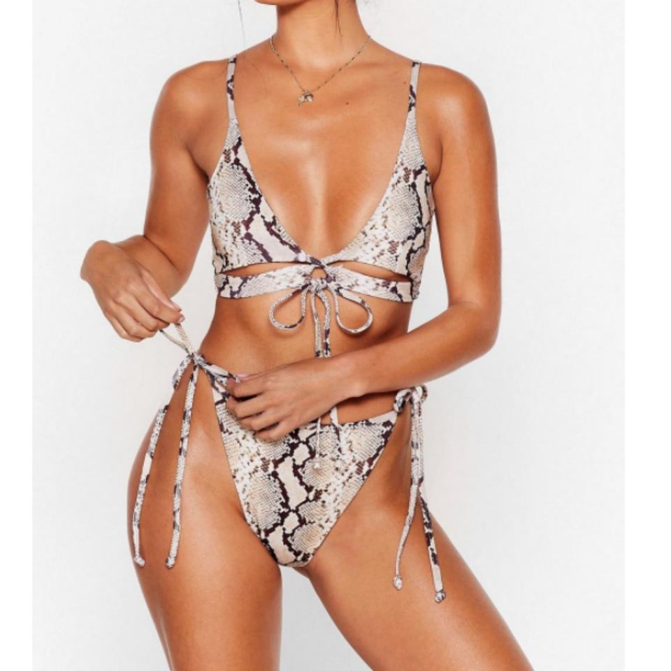 ชุดบิกินี่ทรงสามเหลี่ยมแบบไหล่เดียวสำหรับผู้หญิง ผ้ายืดสแปนเด็กซ์/โพลีเอสเตอร์ พร้อมโลโก้สั่งทำ สายผูกด้านข้าง ทรงวีสตริง ชุดว่ายน้ำสองชิ้น แห้งเร็ว OUTPACE