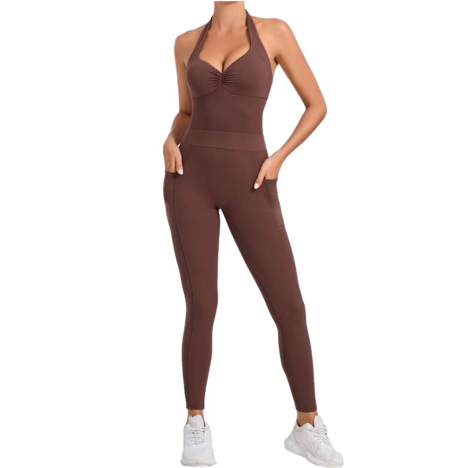 ชุดบอดี้สูทกีฬาผู้หญิง ผ้ายืดสแปนเด็กซ์/ไนลอน ระบายอากาศได้ดี คอวี สายคล้องคอ รัดสะโพก ช่วงหลังสวยงาม แบบสามชิ้น
