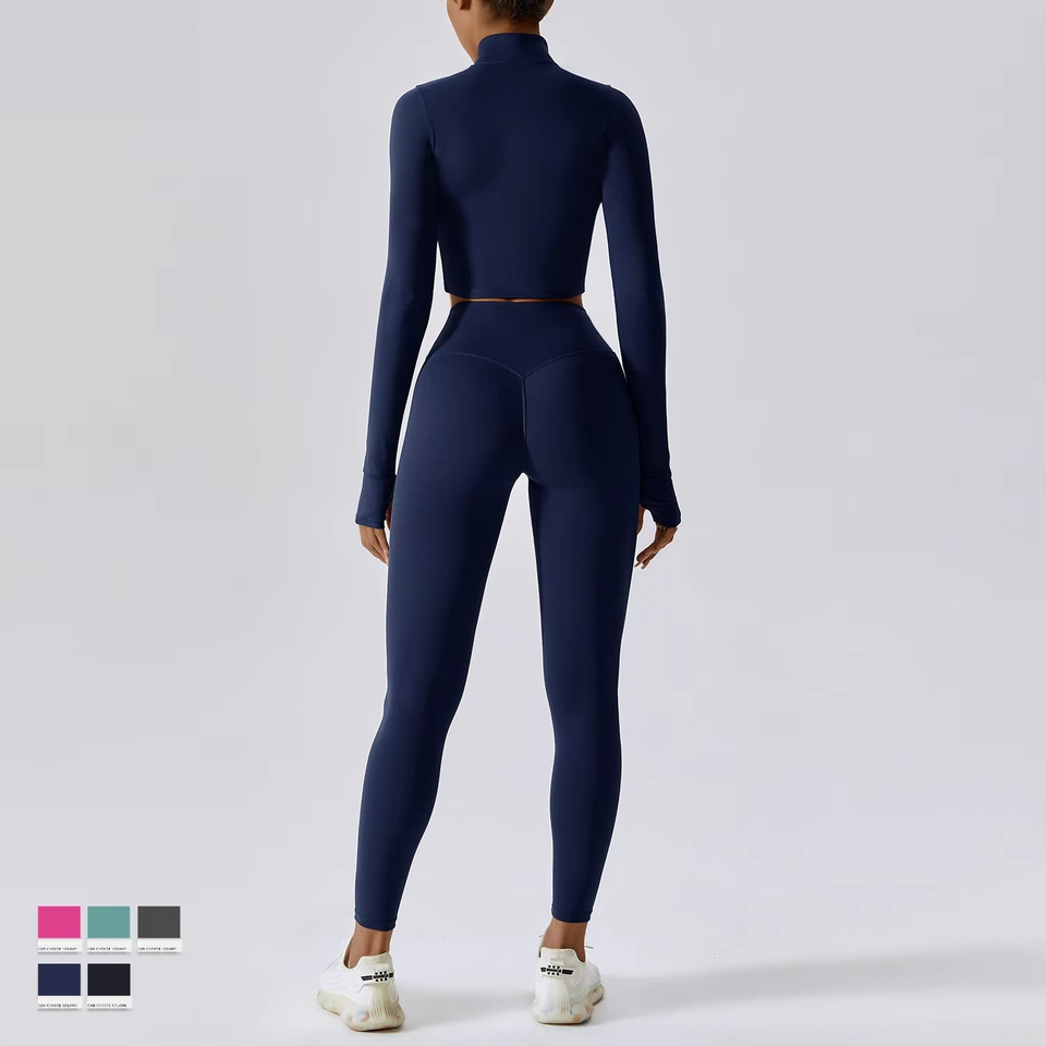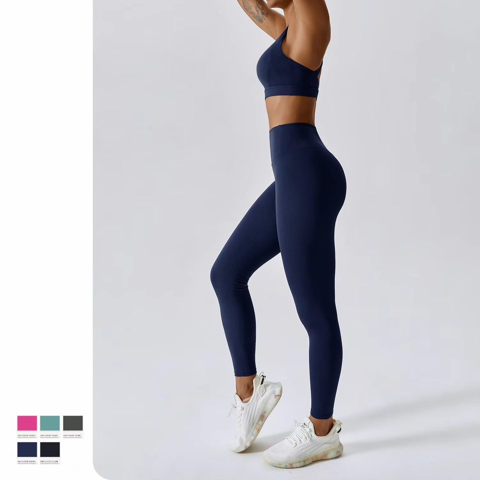 ชุดออกกำลังกายโยคะสำหรับผู้หญิง 2 ชิ้น ผ้าไร้ตะเข็บ เอวสูง ระบายอากาศได้ดี ผลิตจากผ้าสแปนเด็กซ์/ไนลอน ช่วยยกกระชับสะโพก