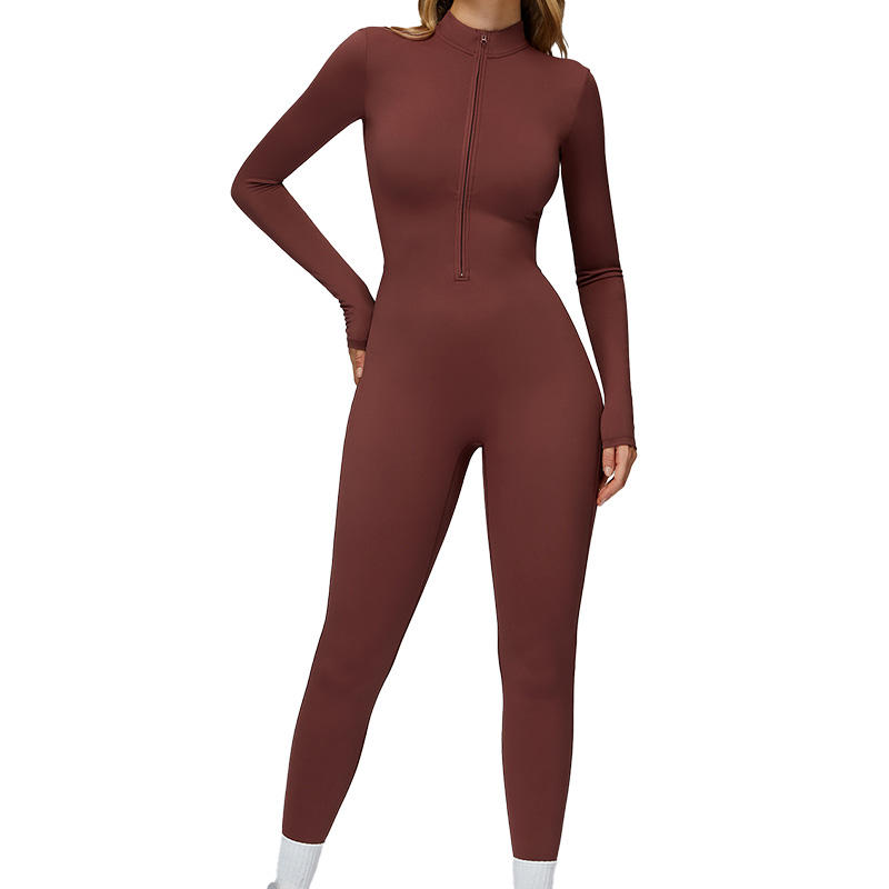 ชุดจั๊มสูทกีฬาผู้หญิง แขนยาว อุ่นสบาย ชุดโยคะแบบชิ้นเดียว ชุดออกกำลังกายแบบยืดหยุ่น กางเกงขาบาน ชุดลำลอง