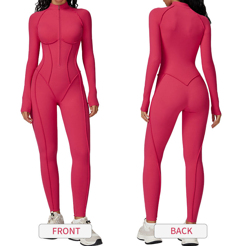 ชุดจั๊มสูทกีฬาผู้หญิง แขนยาว อุ่นสบาย ชุดโยคะแบบชิ้นเดียว ชุดออกกำลังกายแบบยืดหยุ่น กางเกงขาบาน ชุดลำลอง