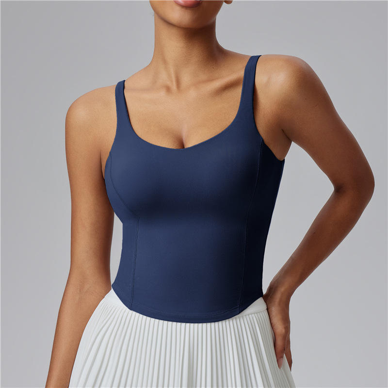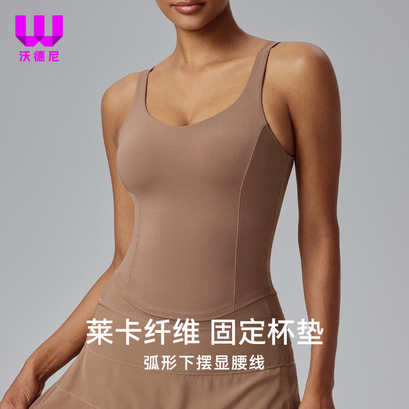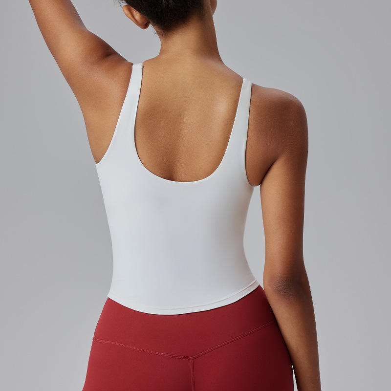 เสื้อกล้ามเล่นกีฬาของผู้หญิงสำหรับใส่ในยิมชุดชั้นในยืดหลังยืดได้ระบายอากาศได้สำหรับเล่นโยคะฟิตเนสเล่นโยคะออกกำลังกายกลางแจ้ง