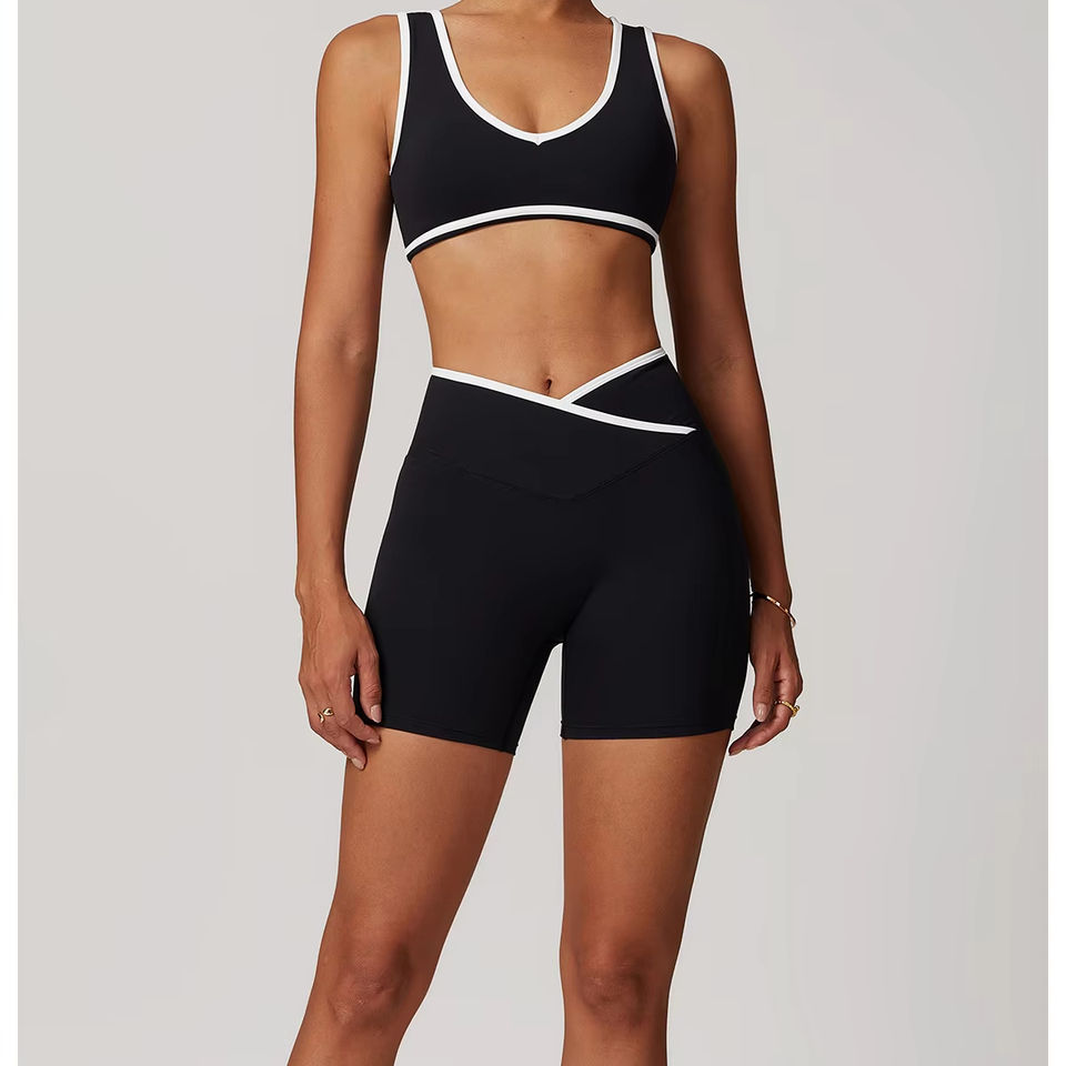 ชุดเล่นกีฬาสำหรับผู้หญิงชุดเล่นโยคะฟิตเนสชุดเล่นกีฬาชุดออกกำลังกายคอวีเอวสำหรับผู้หญิง