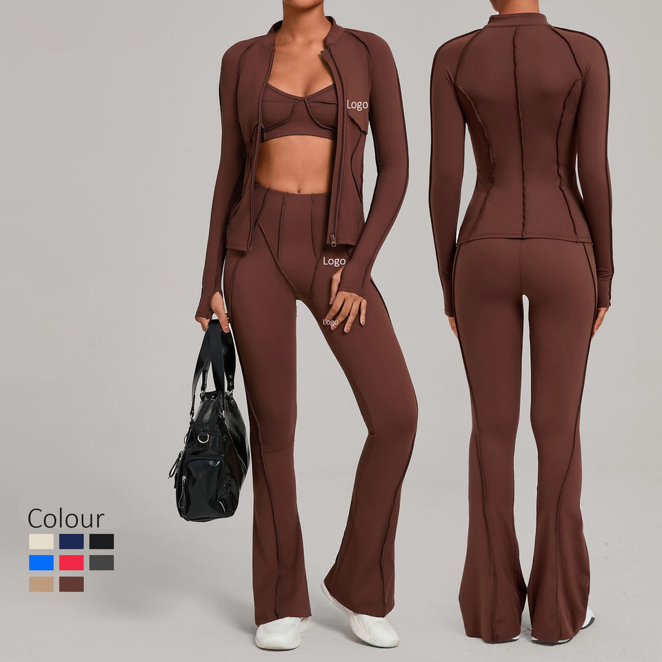 ชุดออกกำลังกายผู้หญิง 3 ชิ้น เสื้อชั้นในโยคะแบบไร้ตะเข็บ ระบายอากาศได้ดี เอวยางยืด พร้อมกางเกงเลกกิ้งเอวสูง เหมาะสำหรับออกกำลังกายที่ยิม