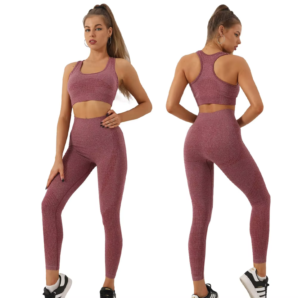 ชุดออกกำลังกายผู้หญิง ชุดกีฬาไร้ตะเข็บ เสื้อครอปแขนยาว บราออกกำลังกาย กางเกงขาสั้นปั่นจักรยาน ชุดโยคะ เลกกิ้ง ชุดฟิตเนส ชุดออกกำลังกายลายตาราง