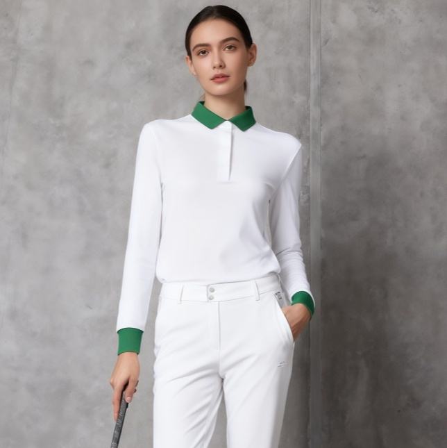 เสื้อกอล์ฟสตรีทรงสปอร์ต ทรงเข้ารูป แขนยาว ปกพับ แห้งเร็ว ระบายอากาศ ผ้ายืด ป้องกันรังสียูวี สำหรับฤดูใบไม้ผลิและฤดูใบไม้ร่วง