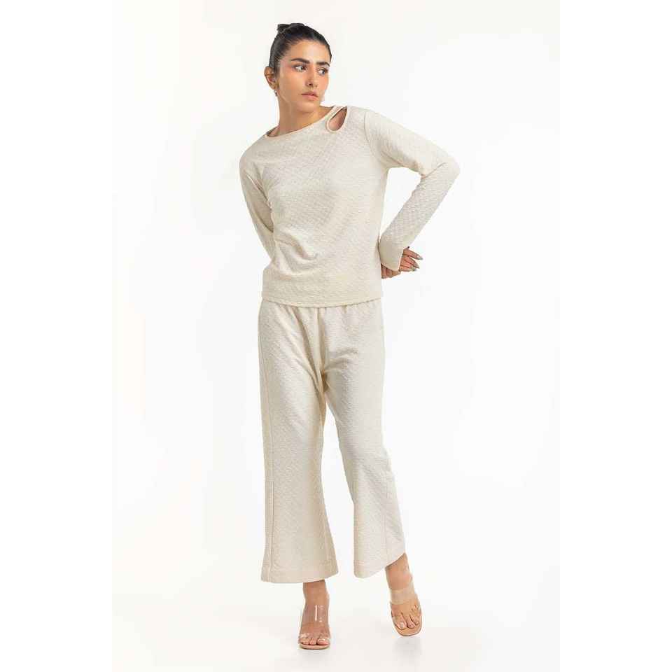 เสื้อครอปท็อปผู้หญิงสไตล์เกาหลี สีขาวนวล ทรงสปอร์ต ไซส์ XL ผ้าถักระบายอากาศดี สีพื้น รุ่นเข้ารูป 224-216-307 T