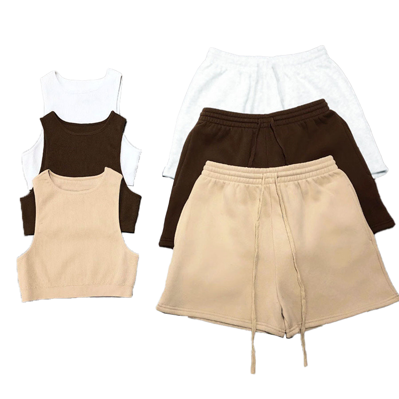เสื้อกล้ามรัดรูปผ้าฟลีซพิมพ์ลายตัวอักษรสีพื้นชุดสองชิ้นแนวสปอร์ตสำหรับฤดูร้อน