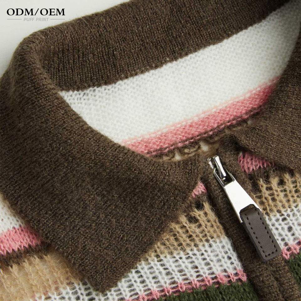 เสื้อสเวตเตอร์ไหมพรมลายทางแฟชั่นใหม่สำหรับผู้หญิง ฤดูใบไม้ผลิ 2025 แขนยาว คอปกสไตล์เรโทร แบบสั้น สไตล์วิทยาลัย