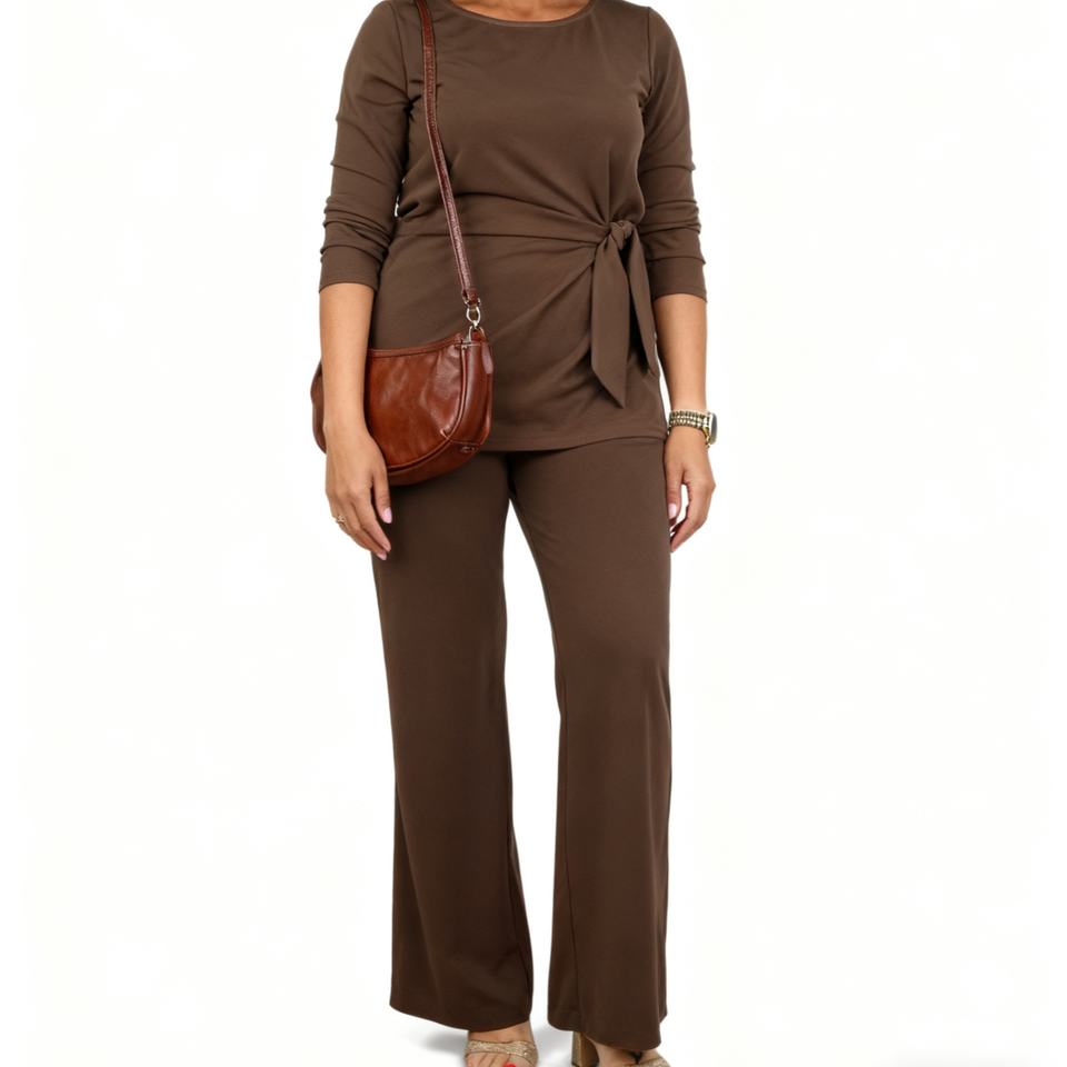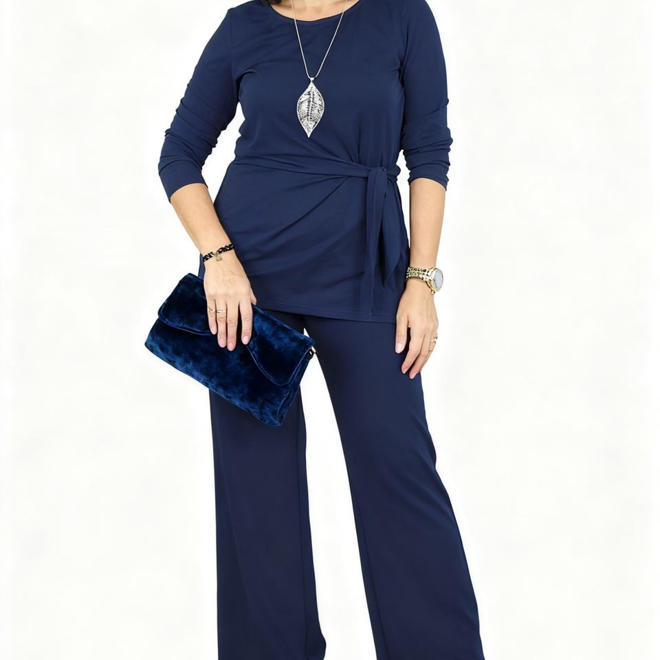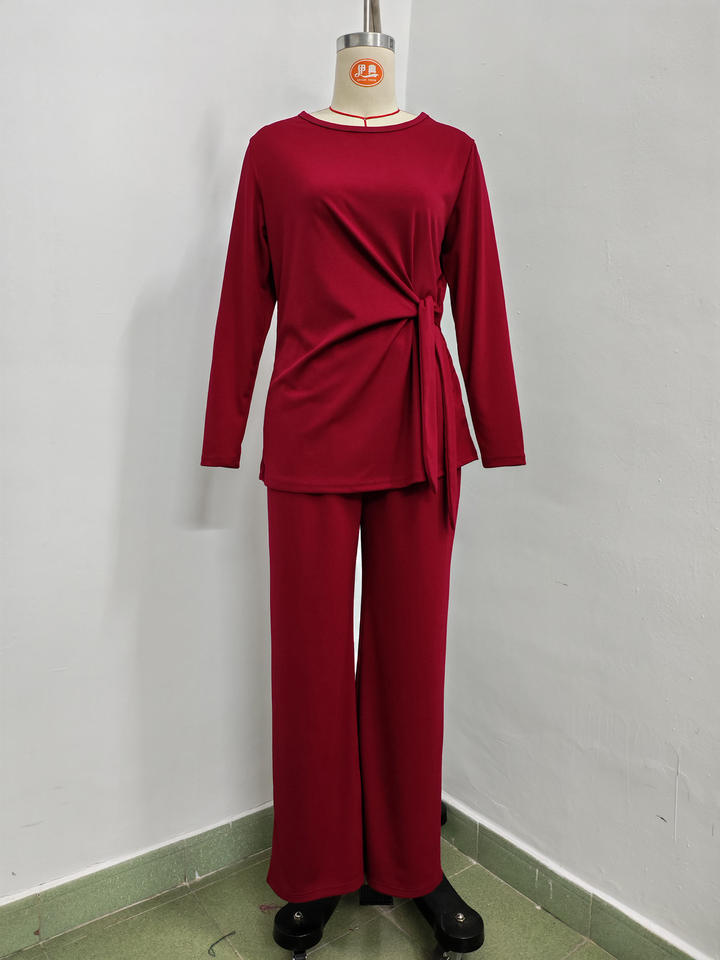 ชุดเซ็ต 2 ชิ้น เสื้อคอกลมผูกโบว์ทรงหลวมไซส์ใหญ่สำหรับผู้หญิง สไตล์ลำลอง แฟชั่นฤดูใบไม้ผลิ/ฤดูใบไม้ร่วง